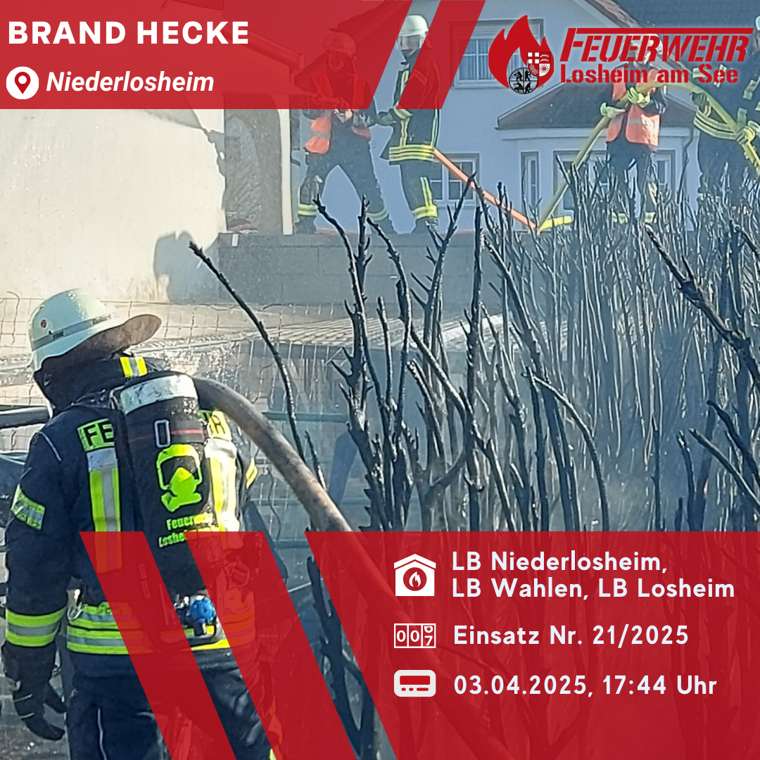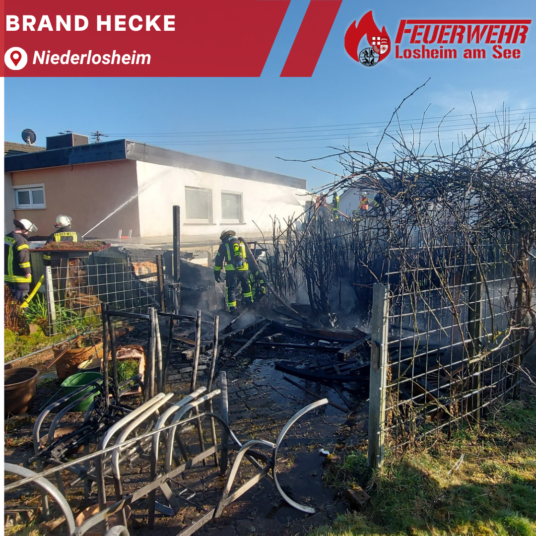 Heckenbrand mit Übergriff auf Geräteschuppen.