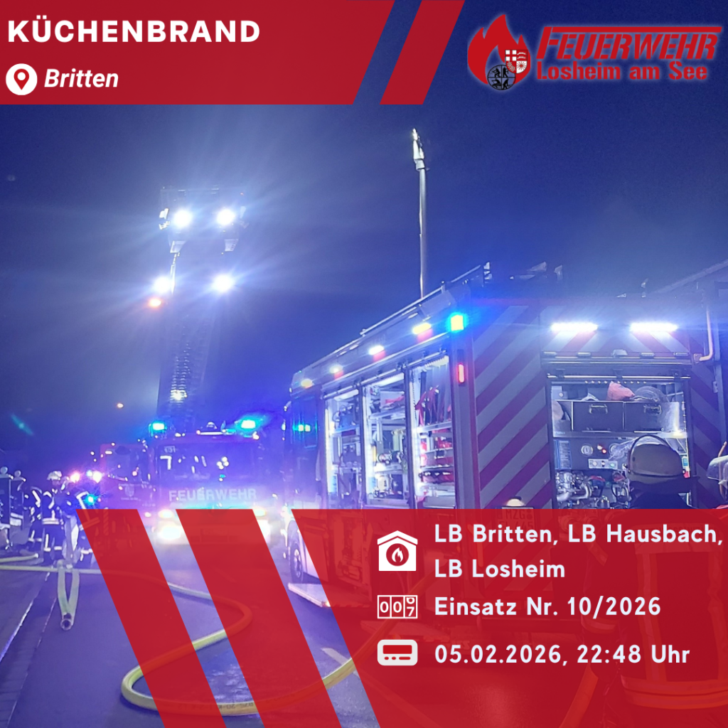 Bestätigter Küchenbrand in Gebäude, Brand unter Atemschutz gelöscht, Gebäude gelüftet und mittels Wärmebildkamera kontrolliert. Anwohner von Rettungsdienst versorgt, Einsatzstelle an Polizei übergeben.