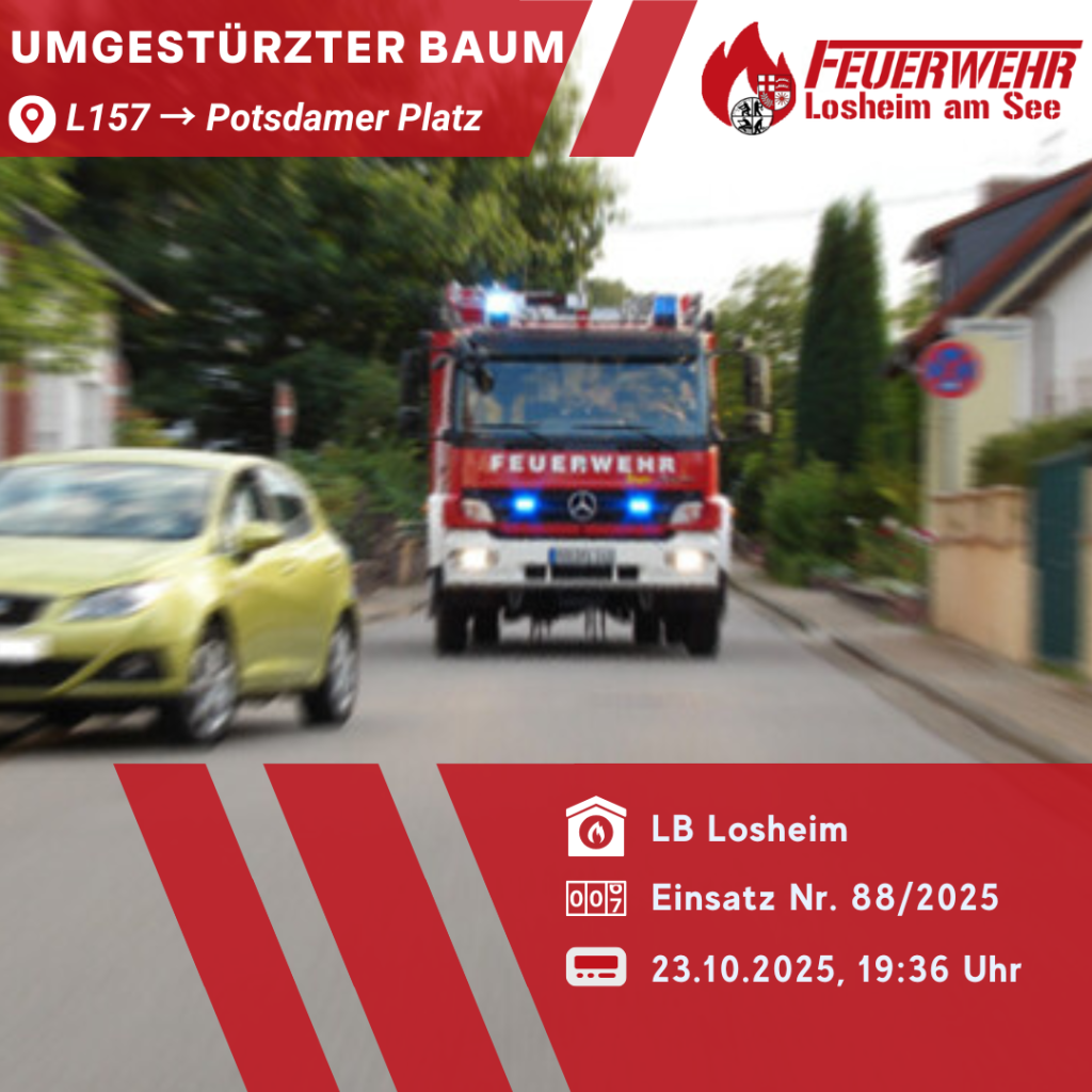 Gemeldeter Baum auf Fahrbahn, Erkundung war negativ, Einsatzabbruch für die Feuerwehr.