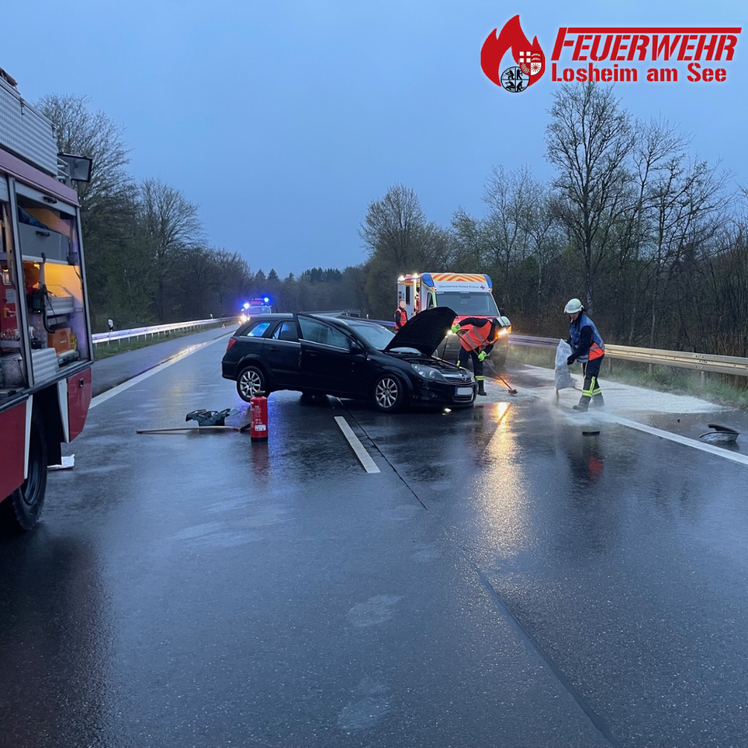 Verkehrsunfall mit drei PKW, 1 Person aus Fahrzeug befreit, auslaufende Betriebsstoffe aufgefangen, Batterien abgeklemmt und Einsatzstelle an Polizei übergeben