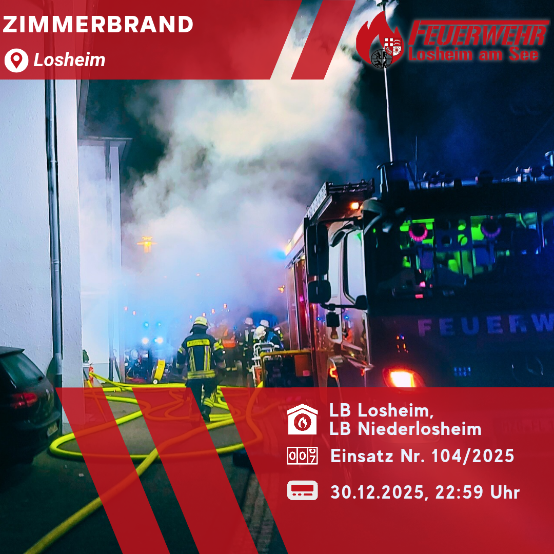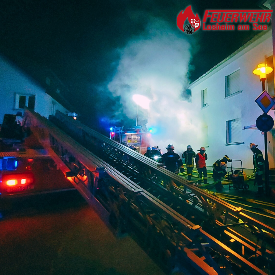 Meldung über unklare Rauchentwicklung in Mehrparteienhaus. Erkundung ergibt Küchenbrand in Erdgeschosswohnung. Brand im Innenangriff unter Atemschutz bekämpft und Gebäude entraucht. Logistische Unterstützung durch LB Niederlosheim beim Abtransport verschmutzter Gerätschaften (Einsatzstellenhygiene). Später Brandnachschau durchgeführt (Einsatz Nr. 105/2025).