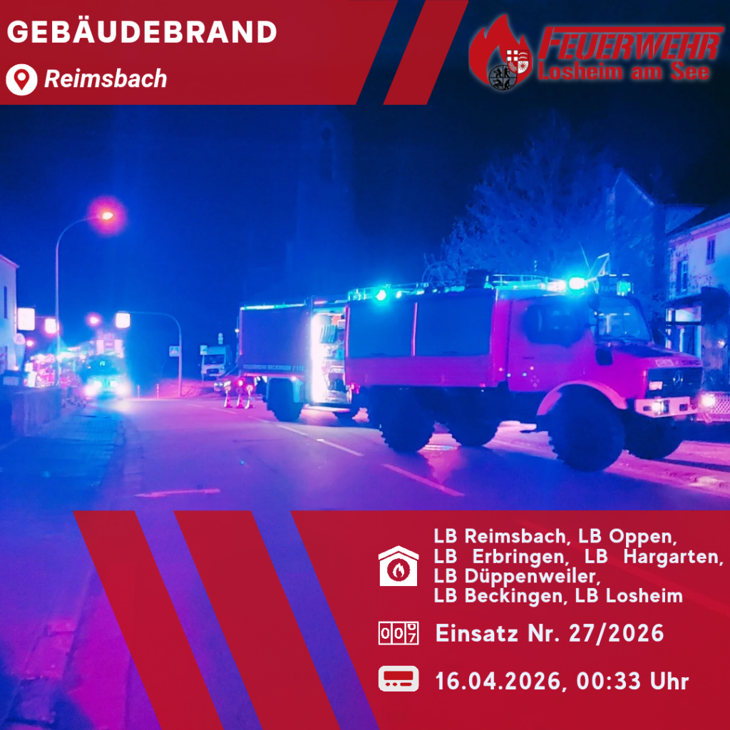 Gemeldeter Zimmerbrand in Reimsbach, bei Ankunft keine Maßnahmen seitens des LB Losheim erforderlich